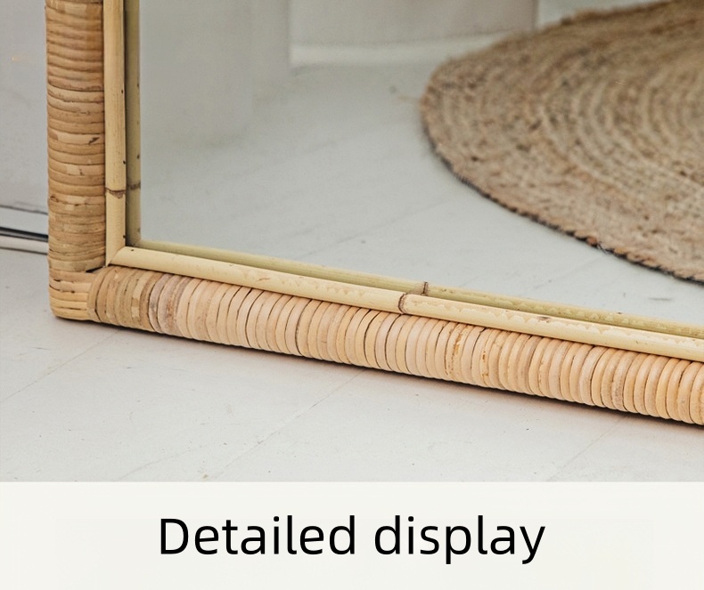 French Retro Dressing Mirror Makeup Mirror Special-Shaped Arch Full Body Mirror Sticker Wall Hanging Rattan Mirror