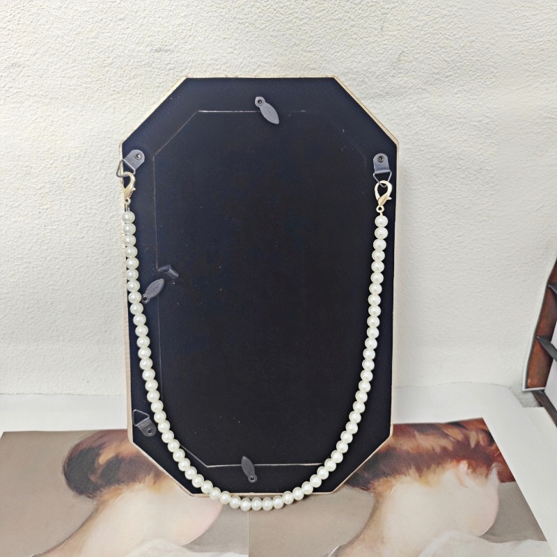 Vintage Canvas Hanging Picture Frame Black Pearl Chain Octagonal Waterproof Decorative Painting