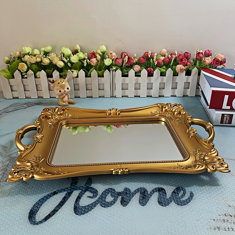 Small Rectangular Decorative Mirror Tray French Cosmetic Storage Box Jewelry Storage Box Tray