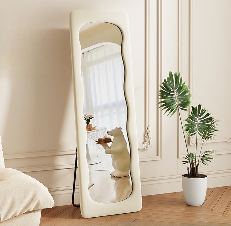 Irregular Flannel Wrapped Mirror, Living Room, Bedroom, Cloakroom Integrated Floor-Standing Full-Length Mirror