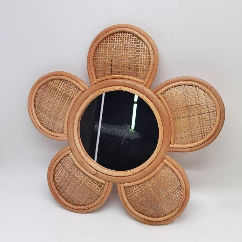 Vintage Handmade Rattan Mirror Entrance Mirror Makeup Mirror