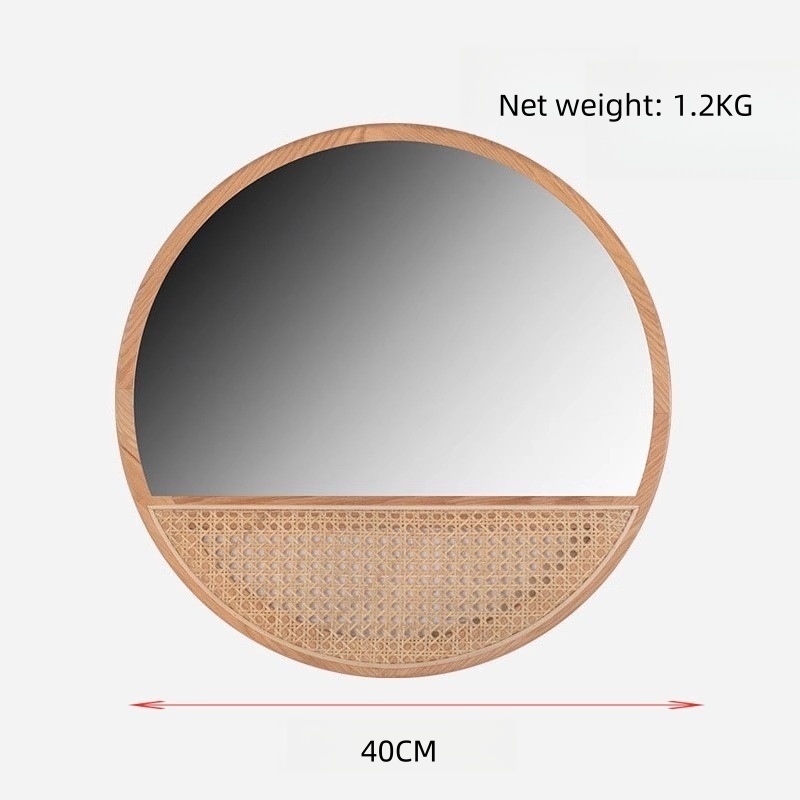 Wooden Retro Makeup Mirror Rattan Round Mirror Home Dressing Mirror