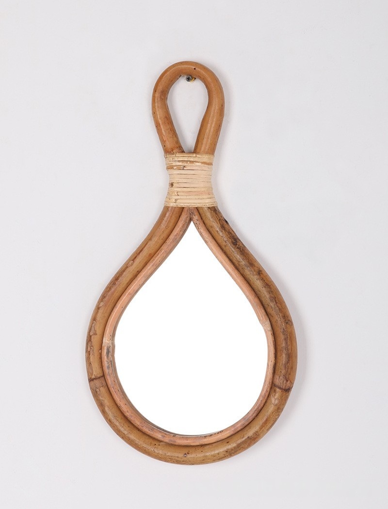 Wall Hanging Decorative Mirror Makeup Mirror Water Drop Rattan Mirror Rural Retro Handmade Rattan Bedroom Mirror