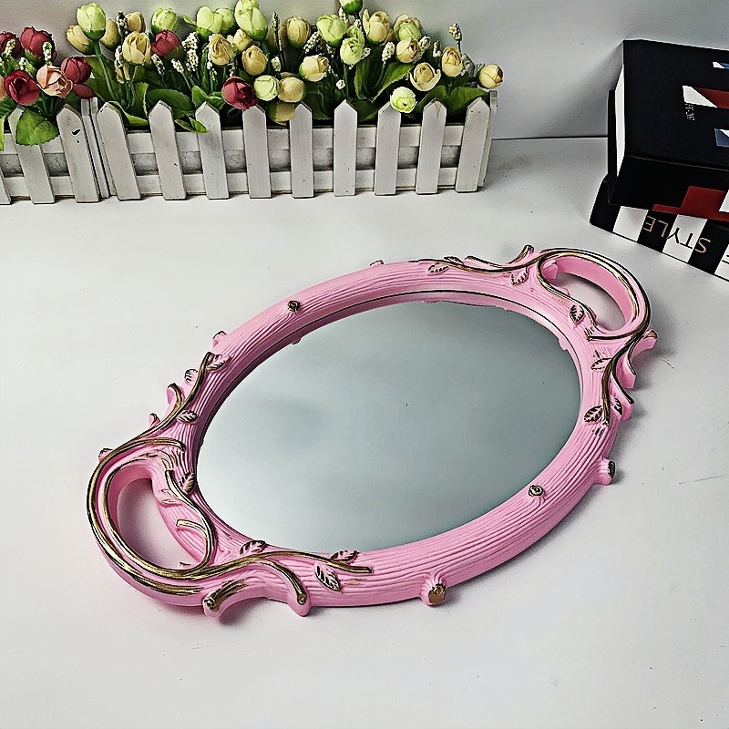 Carved Bathroom Mirror French Retro Wall-Mounted Decorative Mirror Toilet Mirror